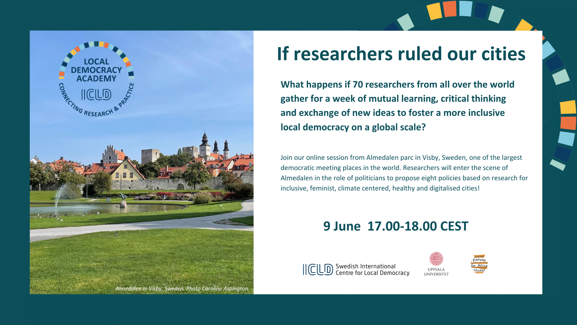 Researchers will enter the scene of Almedalen in the role of politicians to propose eight policies based on research for inclusive, feminist, climate centered, healthy and digitalised cities!