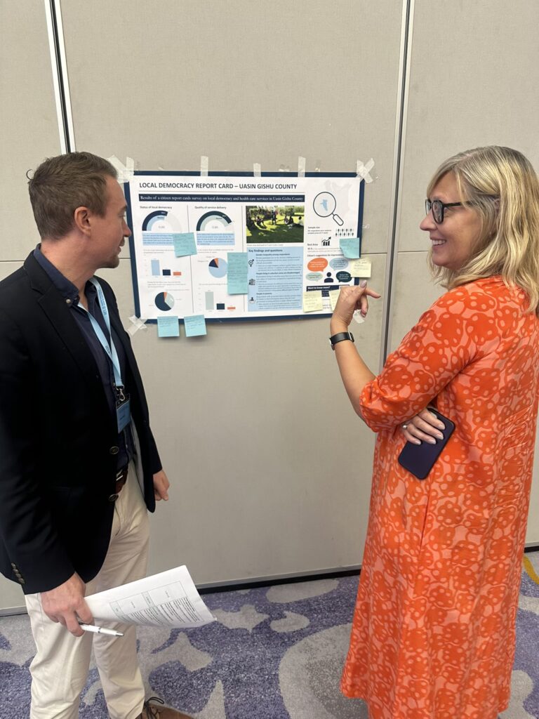 In October 2024, ICLD held an Equitable Health Network Conference held in Nairobi, Kenya, where the results of the Uasin Gishu Citizen Report Card (CRC) survey were shared with attendees. These presentations highlighted the impact of CRCs in strengthening local democracy and improving public services. The photos capture moments from the event, including engaging sessions, the CRC poster presentations, and representatives from partner municipalities and ICLD staff sharing insights with attendees.
