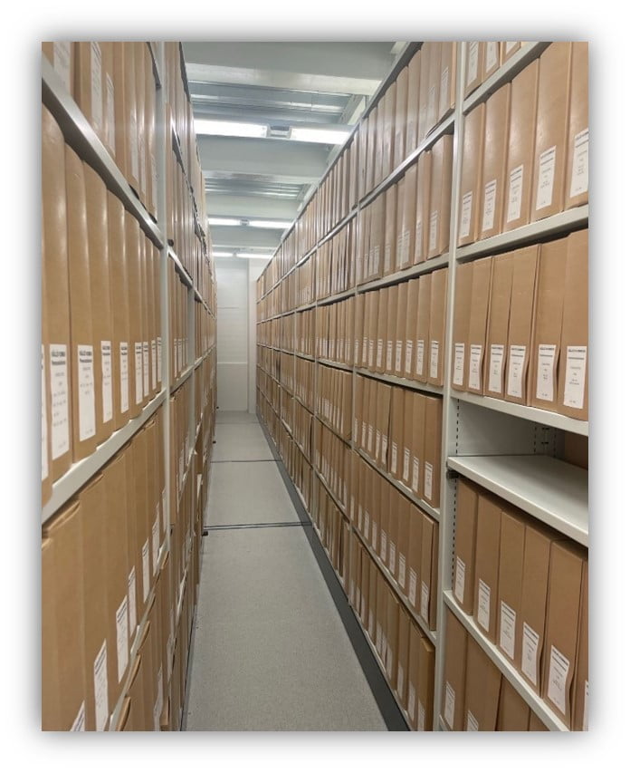 Inom arkivverksamheten finns utmaningar i samhällets övergång till digitalisering. Det behöver säkras så att det som sker i verksamheterna i dag finns tillgängligt och är läsbart för kommunens invånare att ta del av och forska på i framtiden. Kommunarkivet i Växjö till vänster och kommunarkivet i Vushtrri till höger. Foto: Växjö kommun