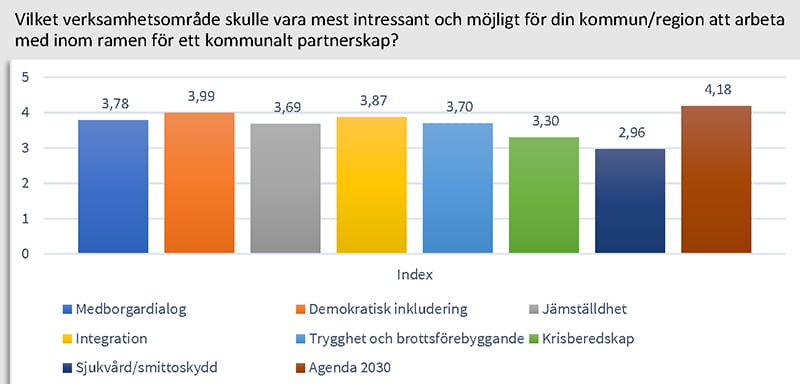 En annan fråga som stack ut i undersökningen var önskan att inom ramen för det kommunala partnerskapet arbeta för att uppnå Agenda 2030 och de globala målen.