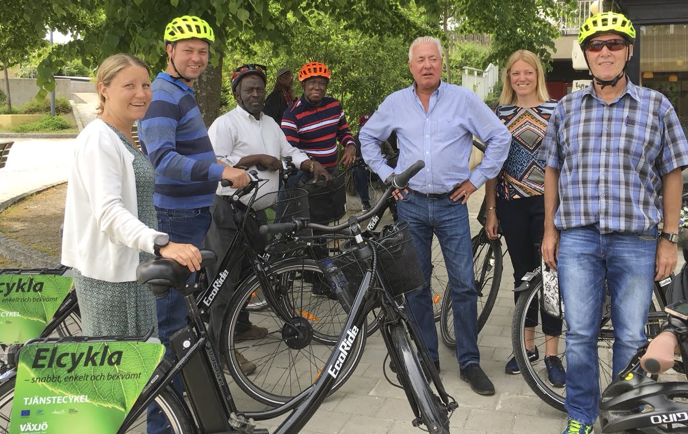 Strålande sol, 25 grader varmt, Annika och hennes kollegor guidade sina gäster på el-cyklar till studiebesök runt Växjö.