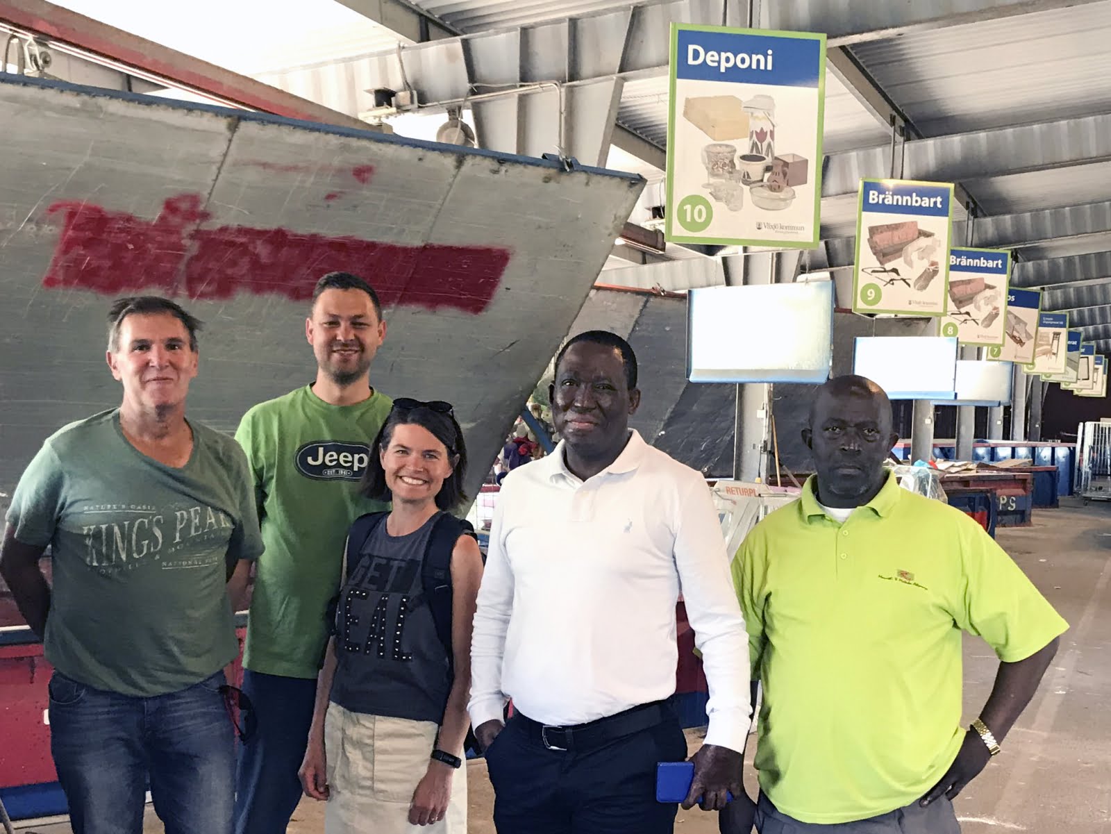 Hendriko Veldman, Wynand Marx, Julia Ahlrot, Michael Maki, Dolos Luka på besök på återvinneniscentralen Norremark i Växjö